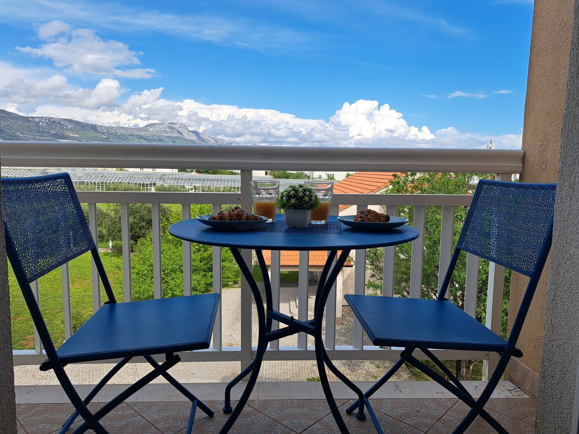 A spacious private terrace with a beautiful view – perfect for morning coffee or evening wine
